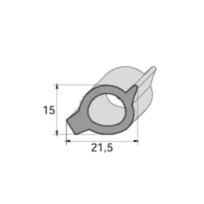 Com uma seção transversal aproximada de 21,5mm e uma forma cilíndrica (conforme diagrama técnico), este perfil é projetado para atuar como anel de vedação, arruela ou protetor em diversas aplicações, incluindo conexões, tubos, mangueiras, cilindros e sleeves. Seu design preciso assegura um ajuste perfeito, funcionando de maneira eficaz como amortecedor, isolante e protetor contra vibrações e impactos.