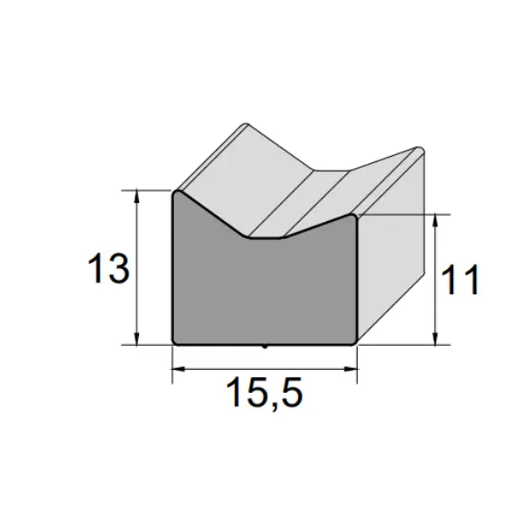 Com dimensões de 15,5 mm de largura, 13 mm de altura e 11 mm na seção de vedação (conforme o desenho técnico), o perfil permite uma instalação precisa e segura. Sua principal função é garantir a estanqueidade em tampas de inspeção, prevenindo a entrada de poeira, água e outros contaminantes em compartimentos de manutenção ou componentes elétricos sensíveis.